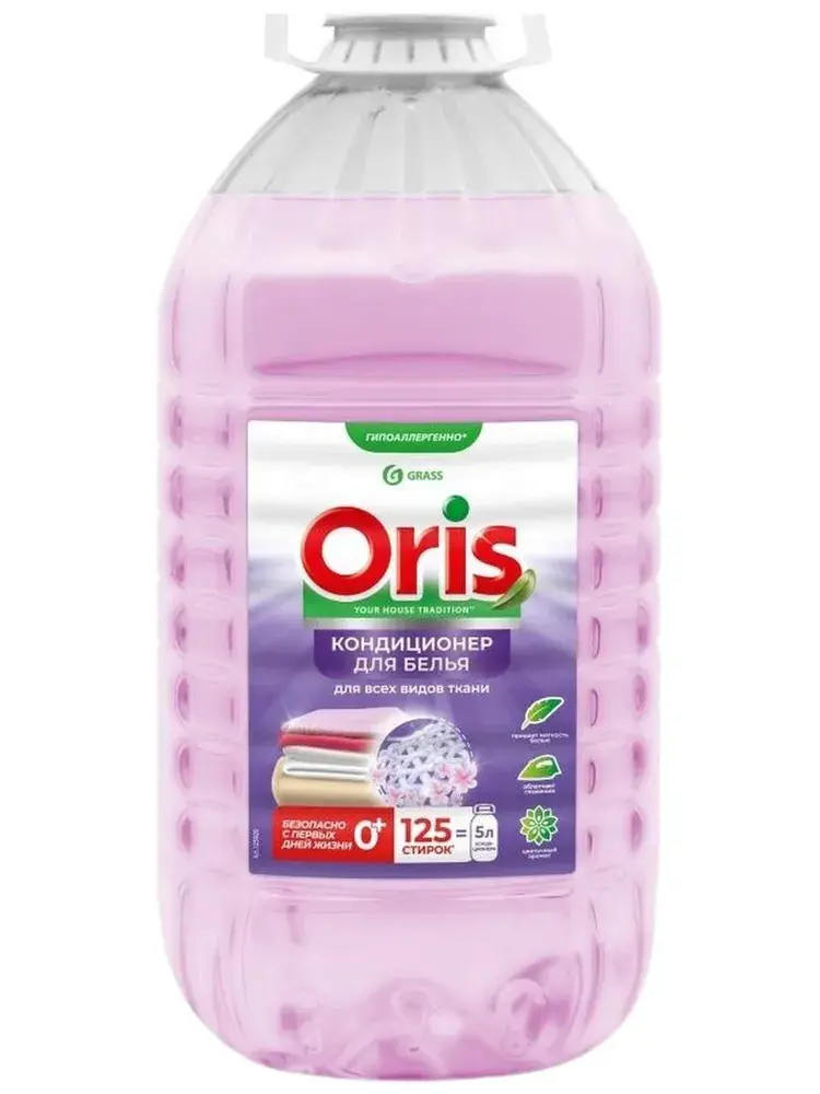 Кондиционер для стирки белья ORIS 5 л от Grass на 125 стирок - представляет собой универсальный гипоаллергенный ополаскиватель с изысканным цветочным ароматом. Идеально подходит для стирки детской одежды и вещей новорожденных (0+), а также черного, темного, белого и цветного белья, применим для всех типов ткани. Полностью вымывается, не оставляя следов и разводов на одежде, сохраняет структуру и цвет вещей, обладает антистатическим эффектом, облегчает глажку одежды после стирки, придаёт вещам мягкость и свежий аромат на долгий срок. Подходит для всех типов стиральных машин, безопасен для септика. Выгодный объем 5 литров, поможет вам использовать наше средство в долгосрочный период, экономив на покупке новых флаконов. Способ применения: 1. Тщательно взболтайте. 2. Для автоматической стирки (автомат) - налейте 30-80 мл средства в выдвижной отсек стиральной машины. 3. Для ручной стирки - полностью растворите в воде для полоскания. Рекомендуемая температура от 20 до 90 градусов. Бытовая химия Grass - это незаменимые помощники в деле любой уборки. С нашими средствами из линейки Официального магазина Грасс - ваша стирка белья преобразится в многоплановый, интересный процесс, подарив комплексный уход и приятный аромат всем вашим вещам!