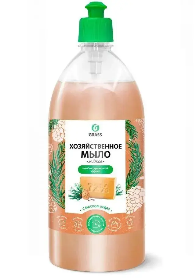 Мыло жидкое хозяйственное с маслом кедра позволяет содержать дом в идеальной чистоте без вреда для здоровья вашей семьи и окружающей среде. Оно отлично справляется с любыми жировыми загрязнениями и благодаря входящему в состав натуральному маслу кедра, обладает антибактериальными свойствами. Подходит для мытья посуды, кухонного оборудования, рабочих водостойких поверхностей (деревянных, керамических, пластмассовых и пр.), сантехники, полов и стен помещений, стекол и стирки любых видов тканей.